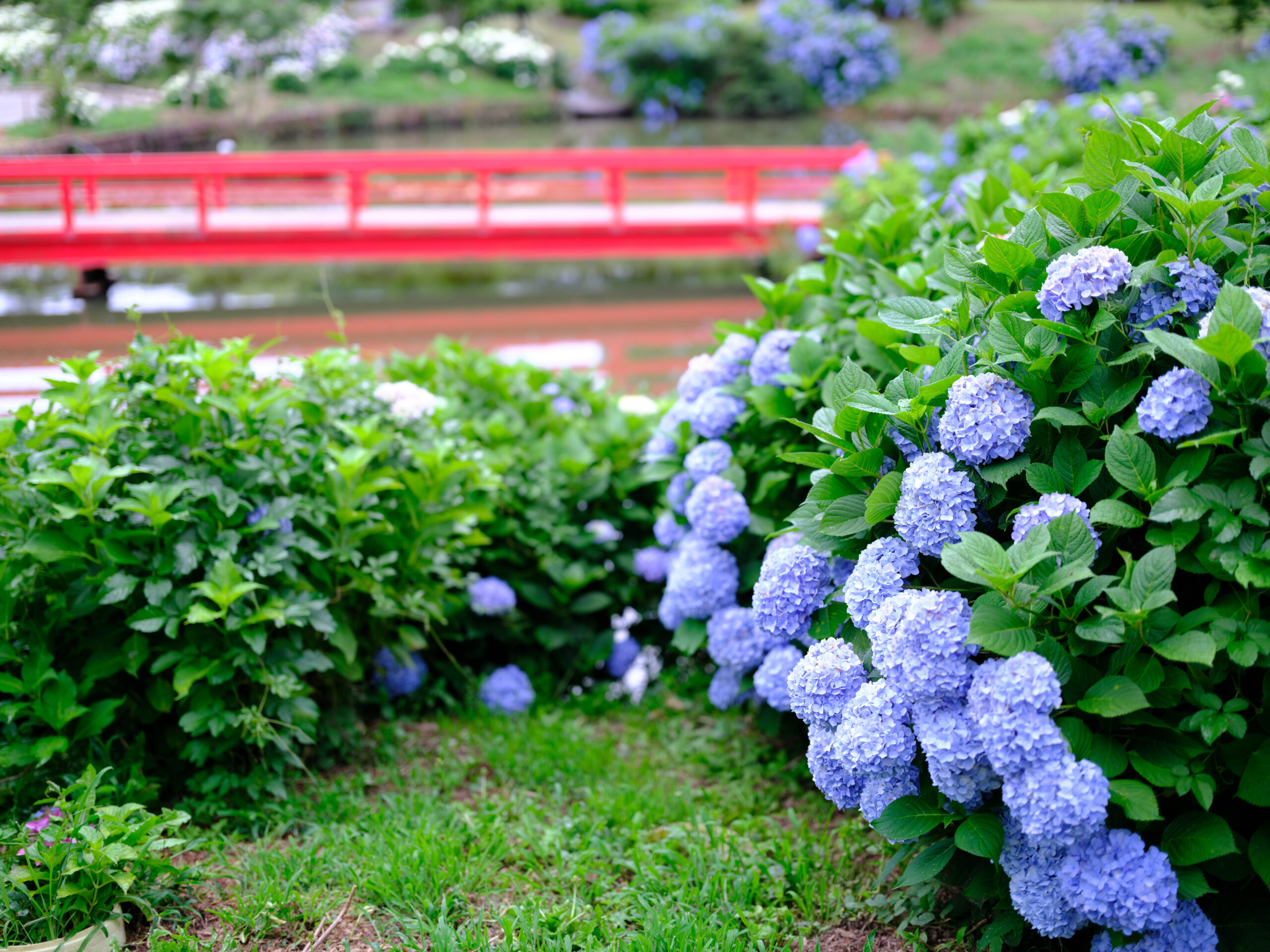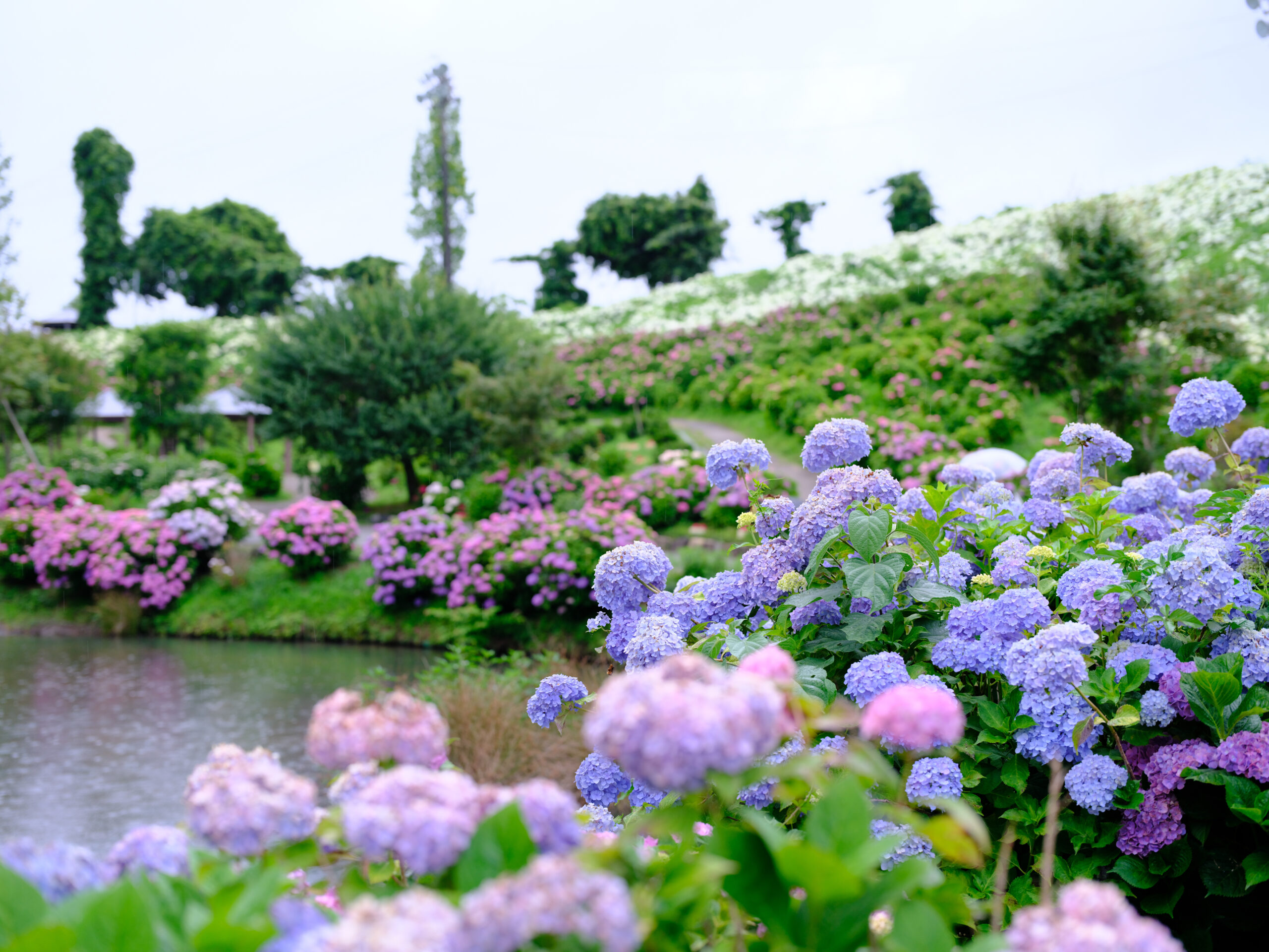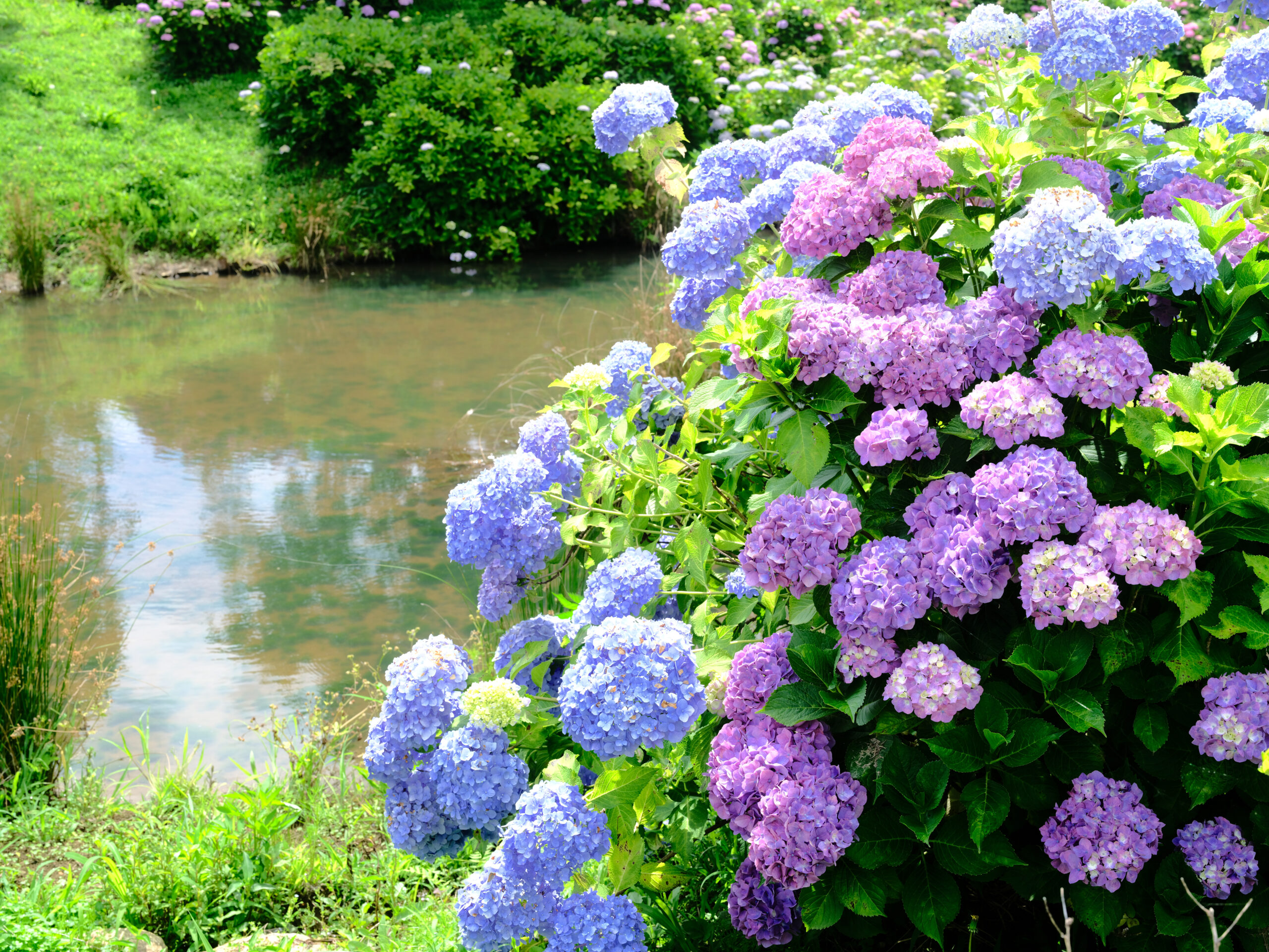 シンプルながら奥が深い、水辺と紫陽花の場所です。