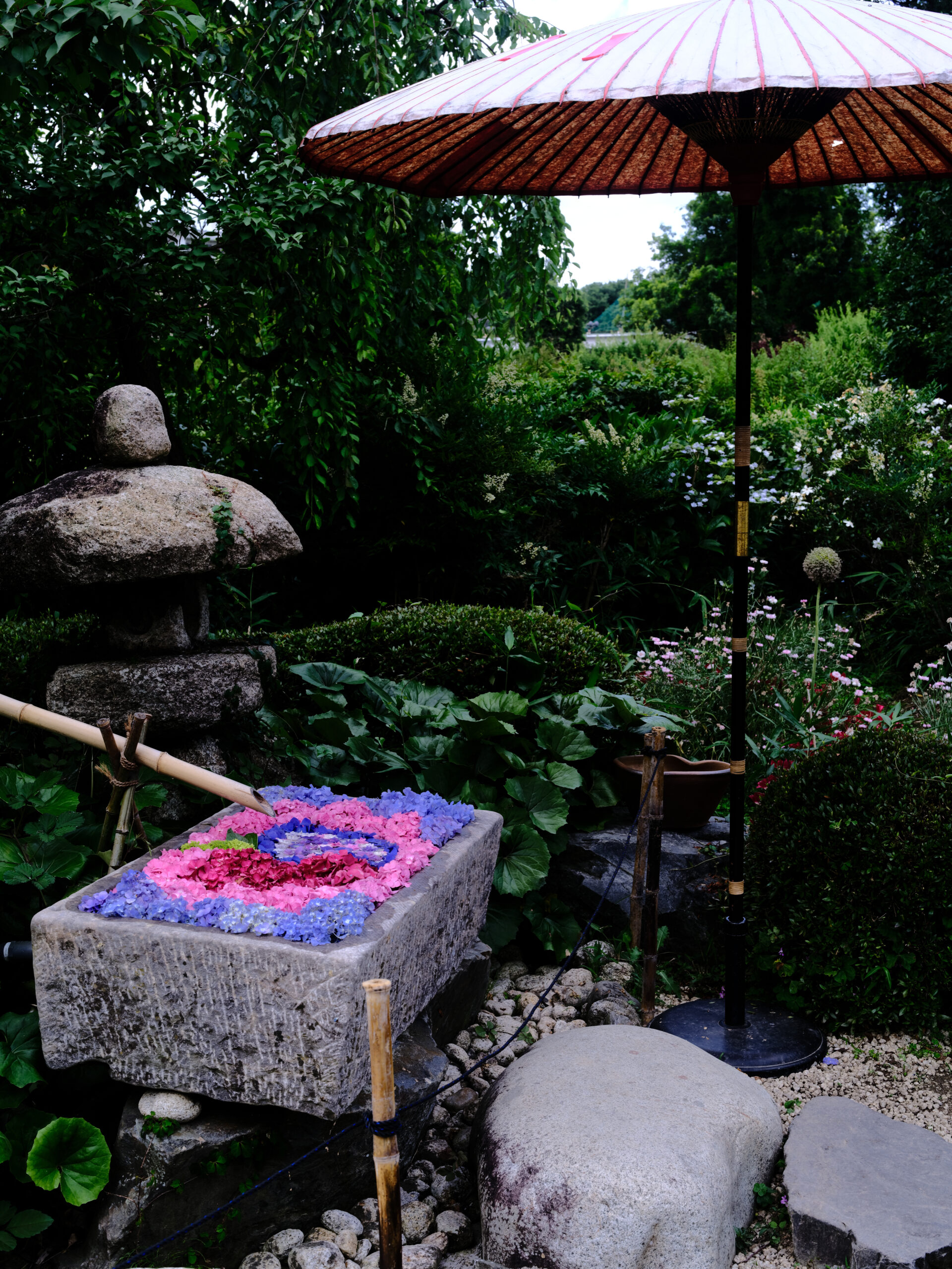 和の落ち着きと紫陽花の鮮やかさが対比となっている場所です。