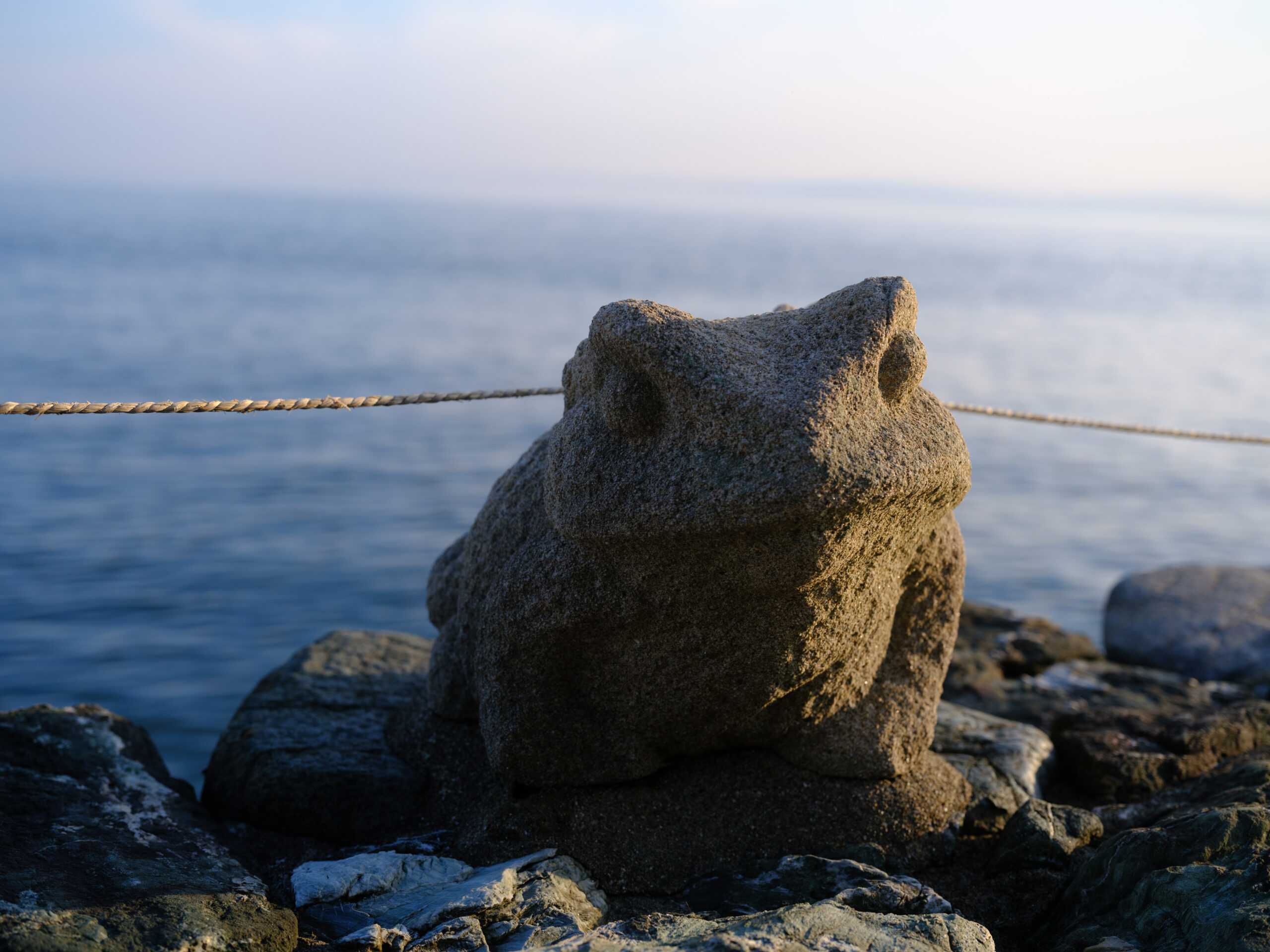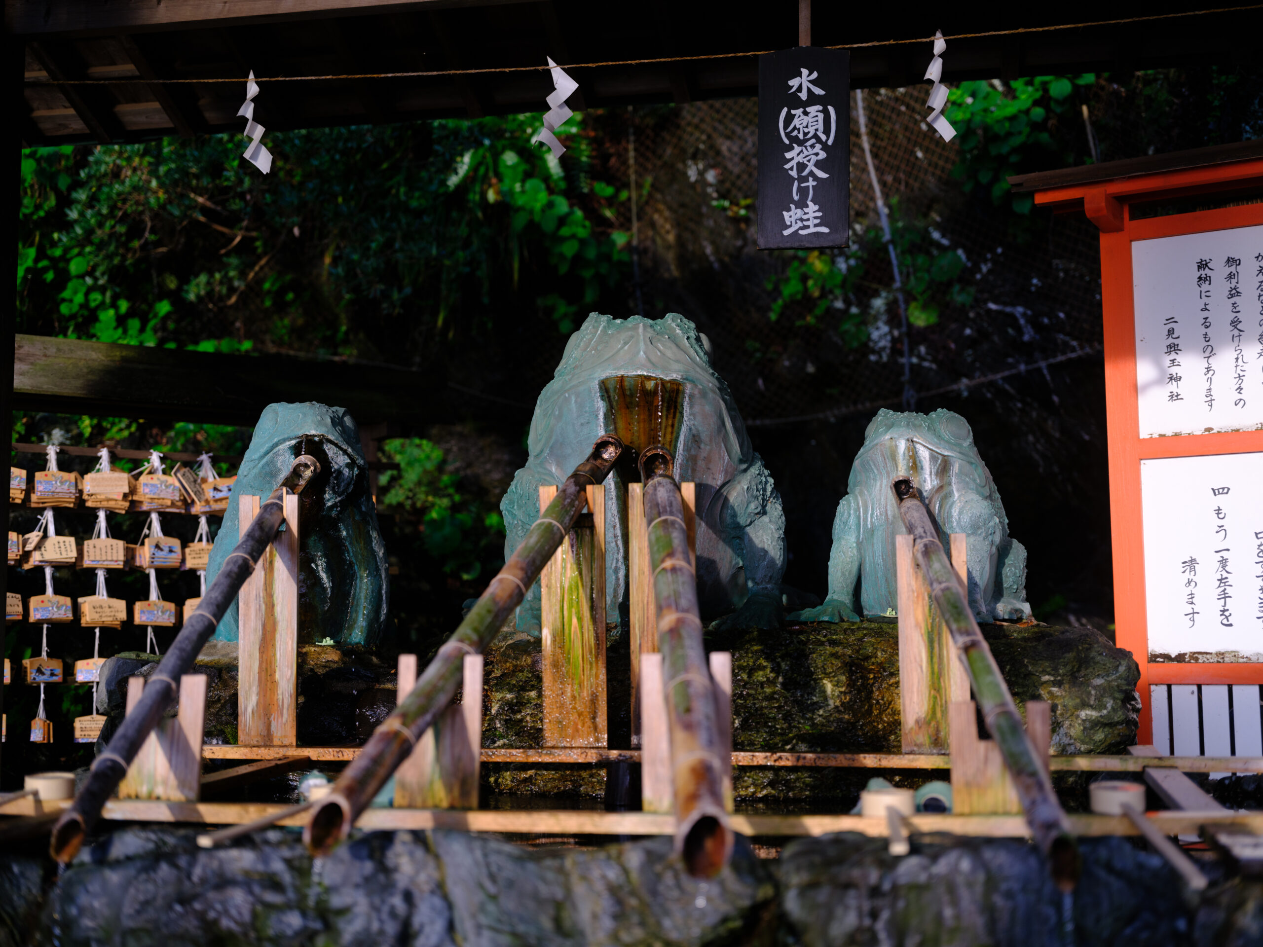 当地は不浄汚穢を禊祓う霊場であるところから、蛙を戴いて小児の痒、腫物その他病痛の邪気を祓って必ず快癒といわれ、信奉されてきました。