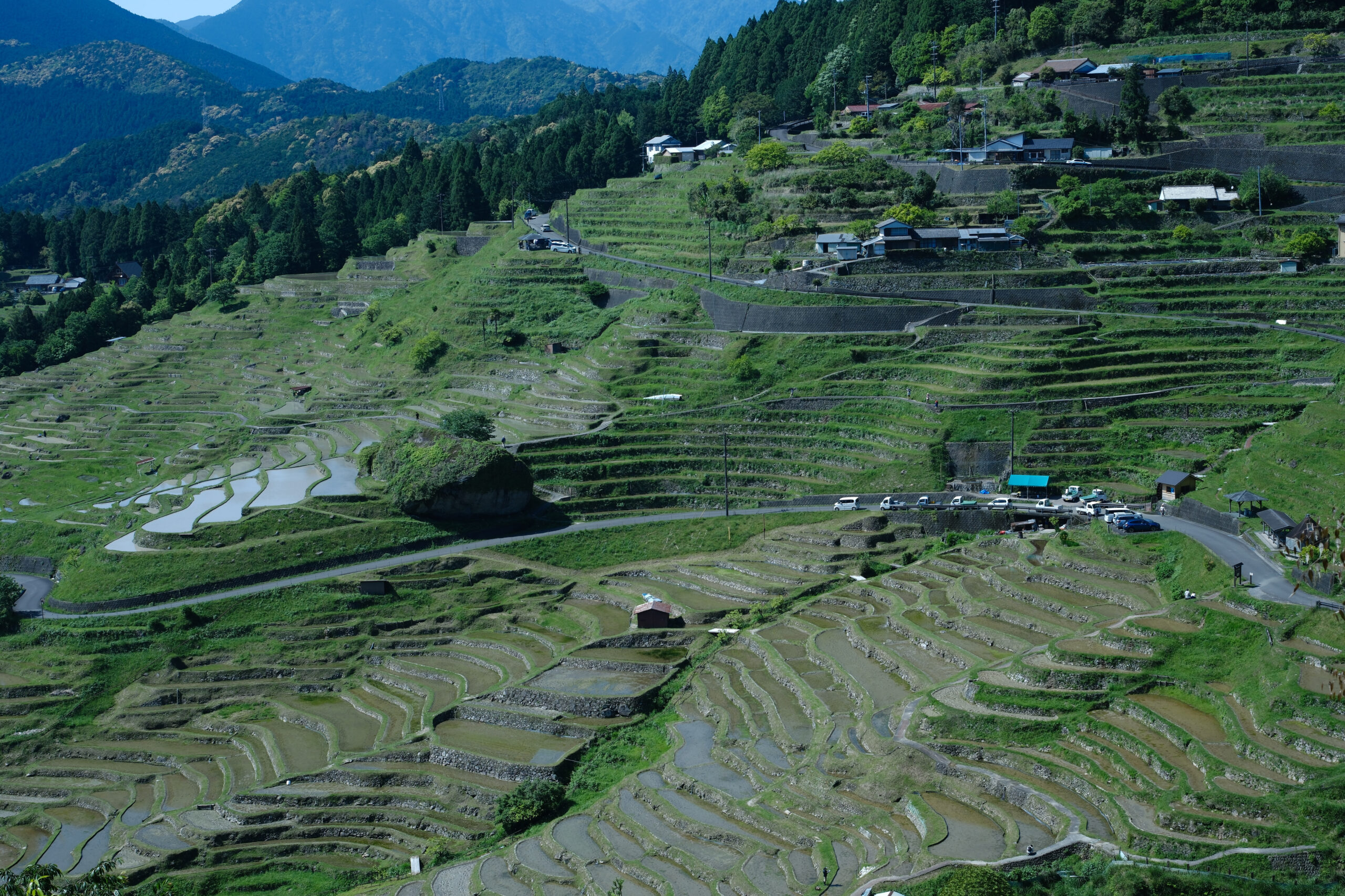 丸山千枚田という場所のようです。撮影スポットが一応ありますが、交通量も多く道も狭いため車で行く人は注意してください。駐車スペース、全然ないです。